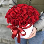 Лента - 1 шт. Коробка шляпная - 1 шт. Пиафлор - 2 шт. роза красная freedom - 25 шт.