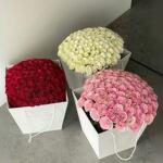 3 Букета из 51 роз в стильной коробке-переноске — идеальный подарок для любимой, мамы или коллеги. Нежность в каждом лепестке. Цветы премиум качества, свежесть гарантирована!