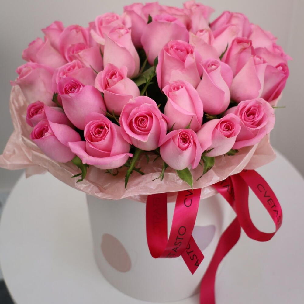 45 розовых роз в коробке