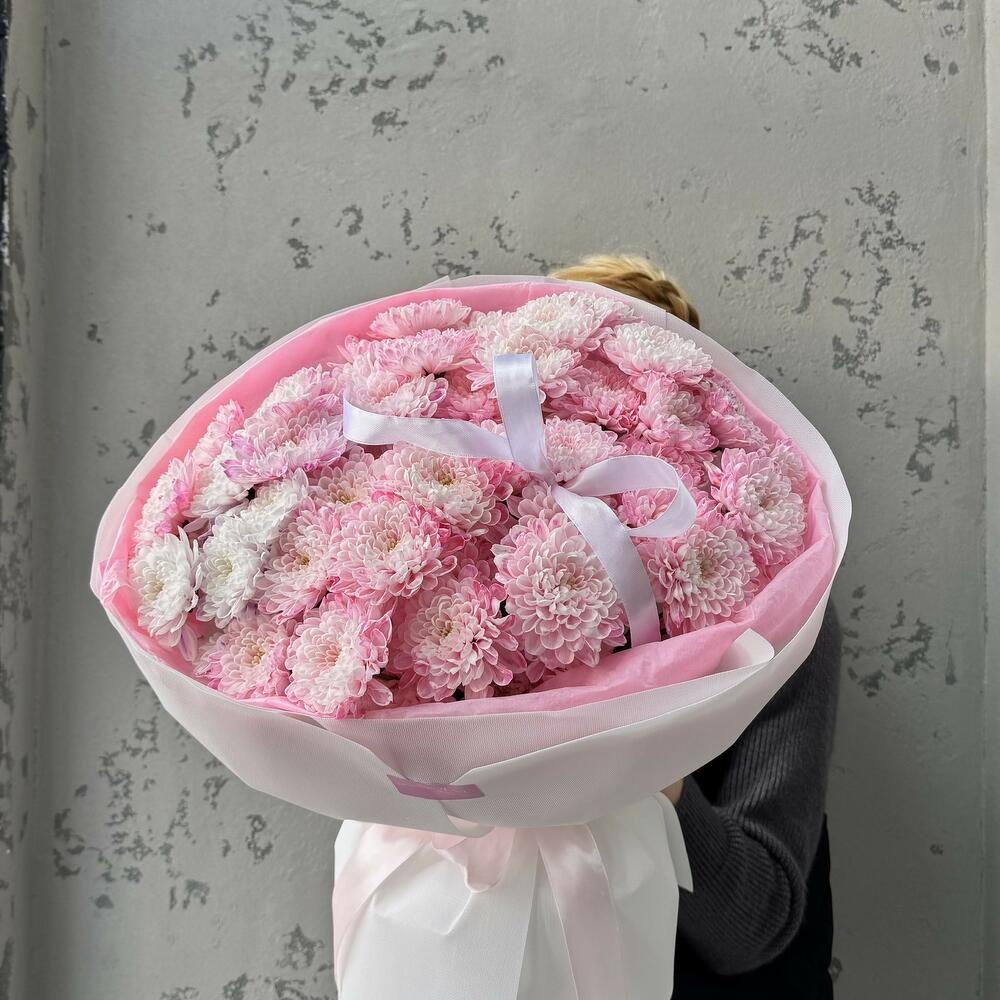 Нежный букет, окутанный атмосферой мягкости и утонченности, воплощающий тепло и заботу. В составе: Пышные хризантемы розового цвета. Оформлен в стильную многослойную упаковку с лентами в тон. Подойдет для: романтического признания, празднования особых моментов или как знак искренней заботы. 💖 Нежность, которая обнимает душу.