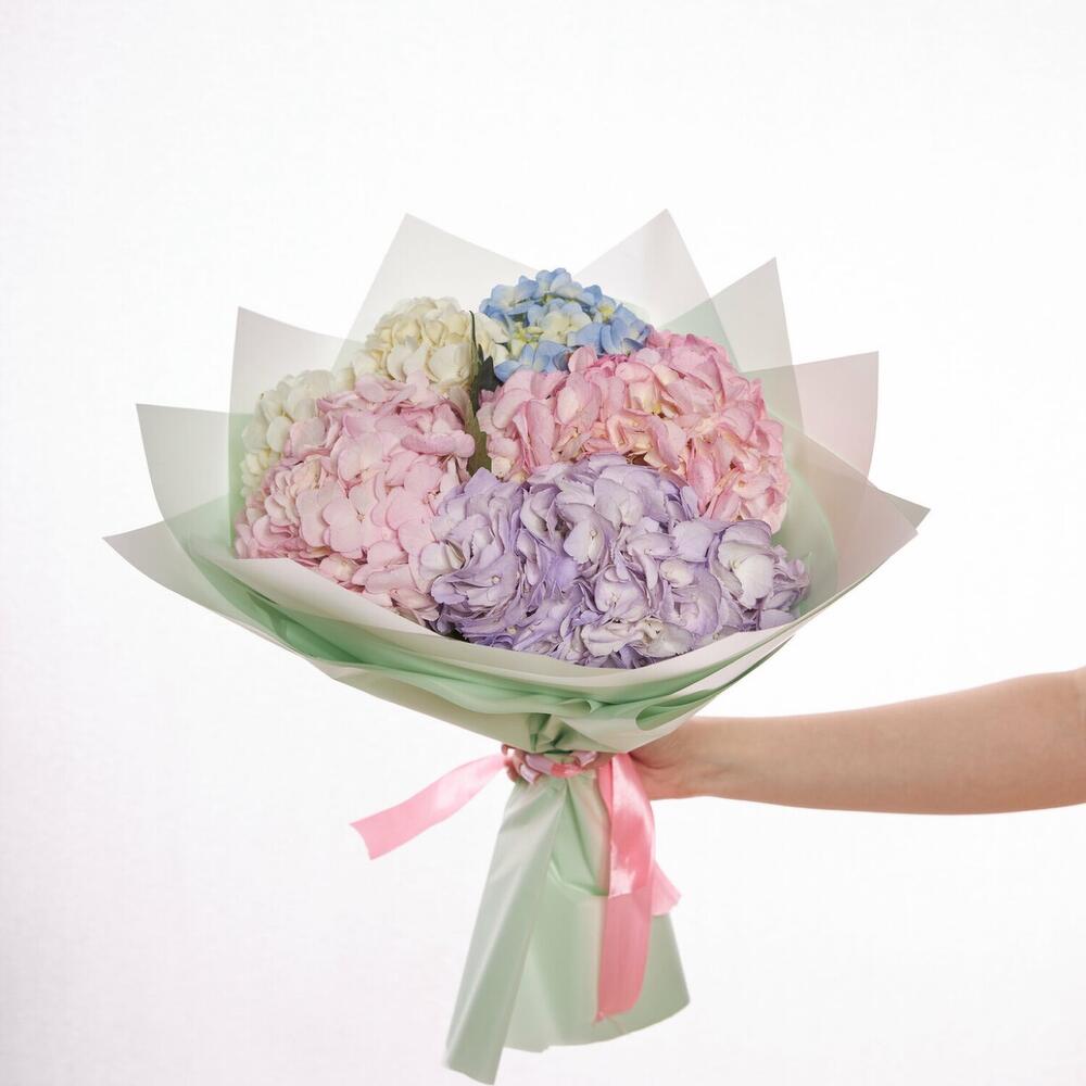 Дизайнерская упаковка - 1 шт. гортензия гидрангея - 5 шт.