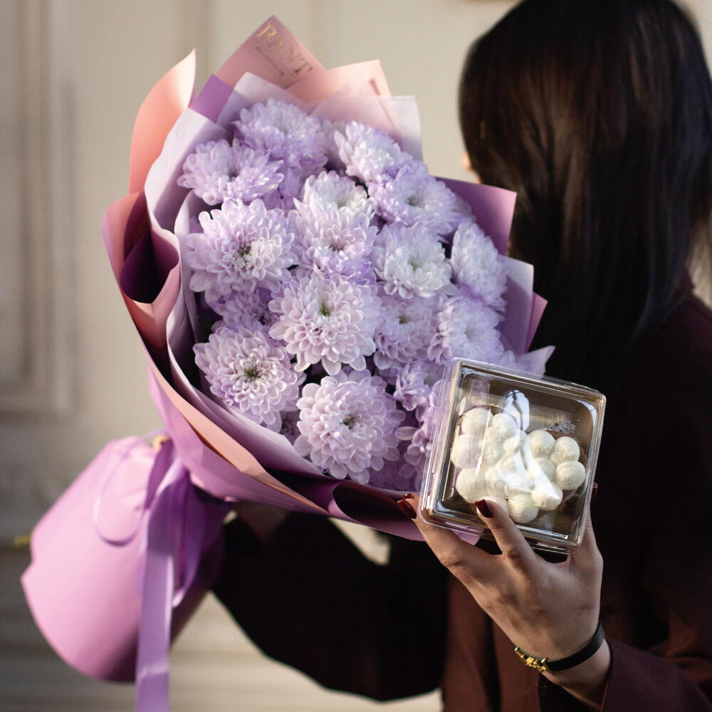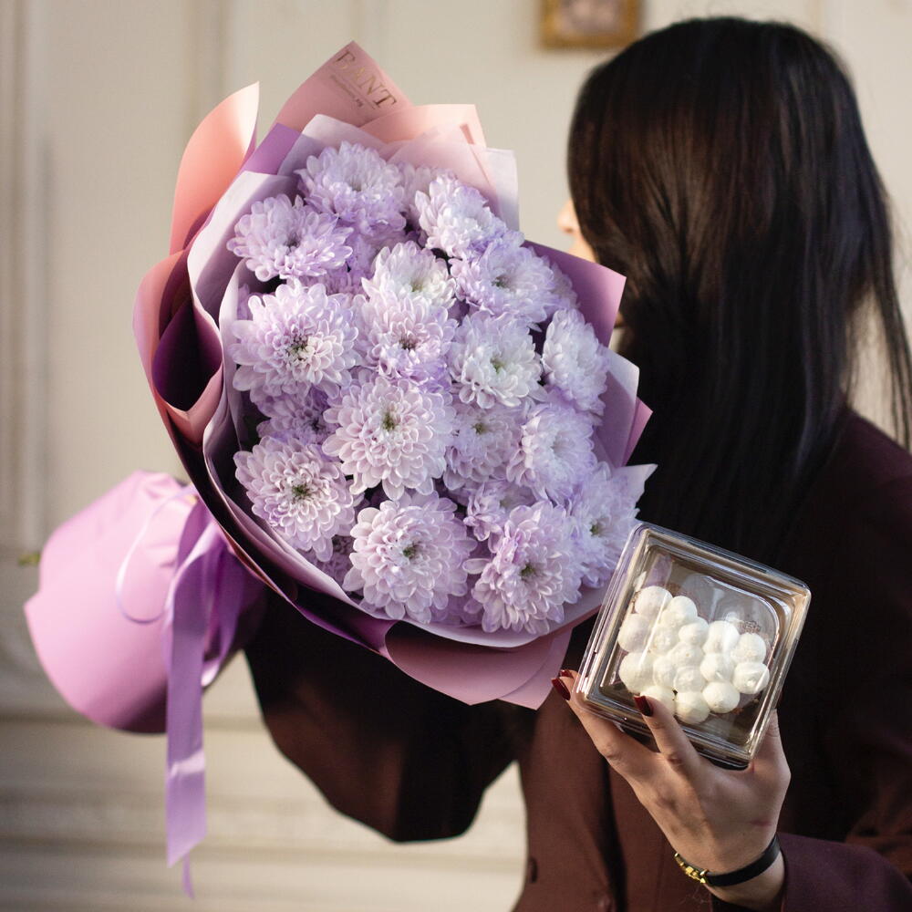 5 Кустовых хризантем сиреневых + десерт