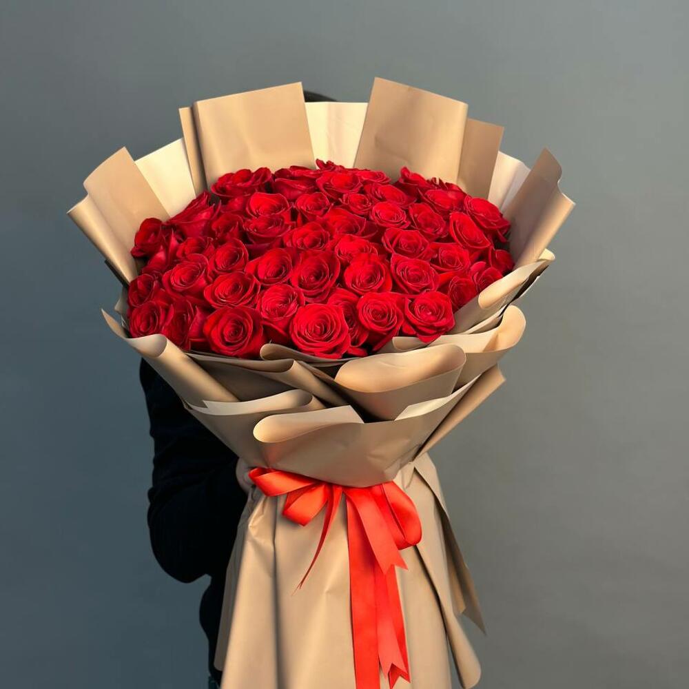 51 насыщенно-красная роза — символ страсти и вечной любви. Великолепный, роскошный букет, который впечатлит и подарит незабываемые эмоции