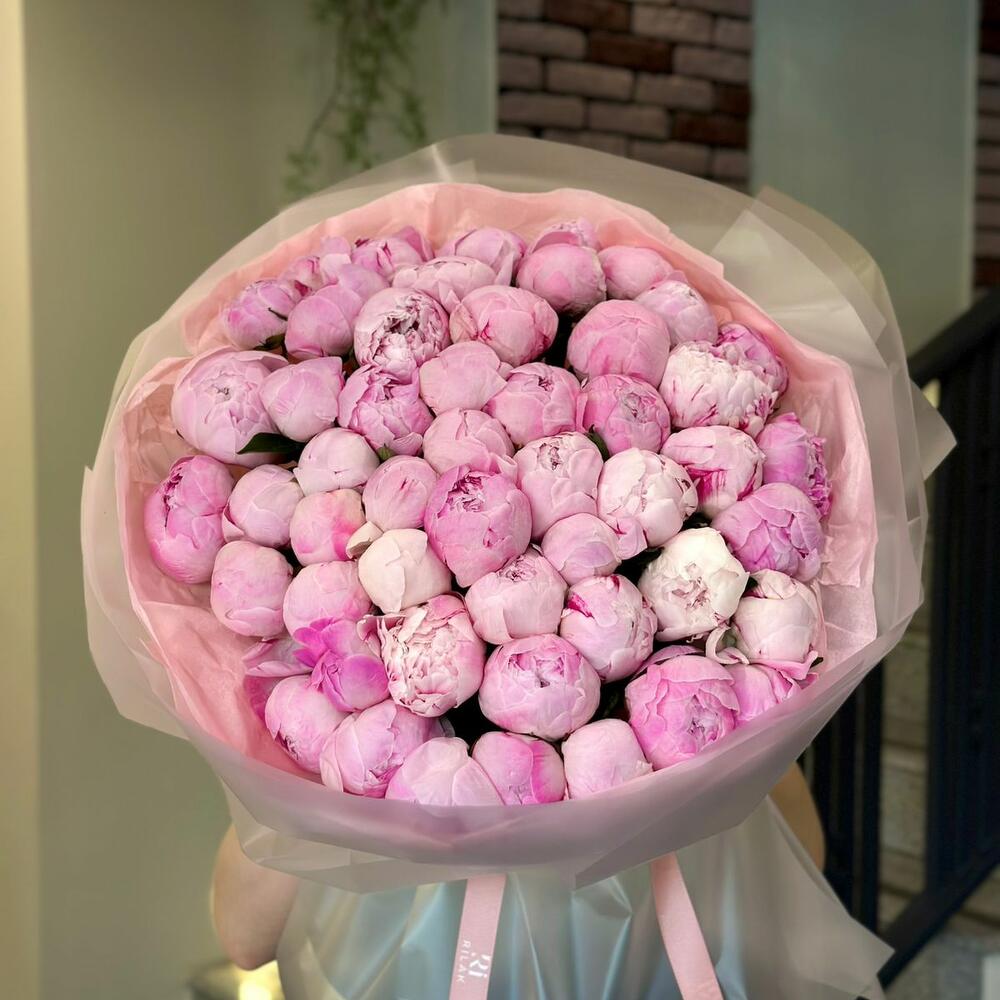 Букет из 51 пиона — это не просто цветы, это признание, в которое вложено сердце. Каждый пион — как отдельная эмоция: нежность, восхищение, забота, любовь.