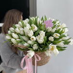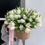«Ты моя Весна» 51 тюльпан в ротанговой корзине (цвет может меняться по согласованию)