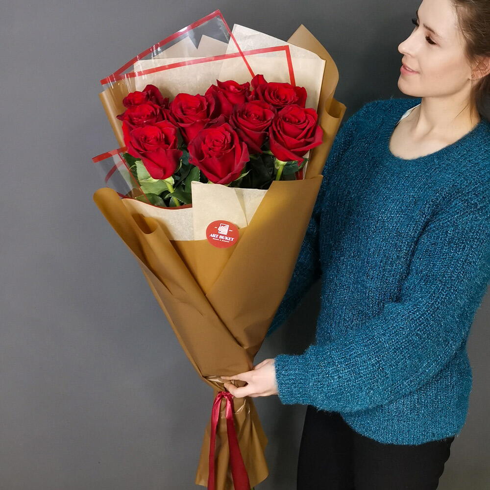 Лента - 1 шт. Оформление - 1 шт. красная роза freedom 90 см - 9 шт.