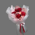 Уникальный букет с акцентом на экзотические антуриумы, насыщенные красные розы и нежные оттенки упаковки. Этот букет покоряет своей утончённостью и магией. Идеальный выбор для тех, кто ценит яркую индивидуальность и глубокие чувства.