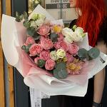 Альстромерия - 3 шт. Эвкалипт - 4 шт. Эустома - 3 шт. juliet rose - 5 шт.