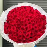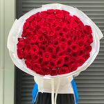Упаковка дизайнерская - 8 шт. Лента атласная белая - 1 шт. розы красные - 101 шт.