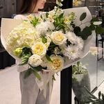 Гортензия - 1 шт. Маттиола - 1 шт. Хризантема кустовая - 3 шт. Эвкалипт - 1 шт. розы - 3 шт.