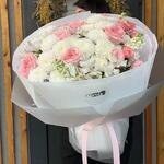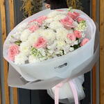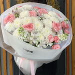 Альстромерия - 4 шт. Маттиола - 3 шт. Хризантема кустовая - 5 шт. Роза - 7 шт. Кустовая роза - 4 шт.