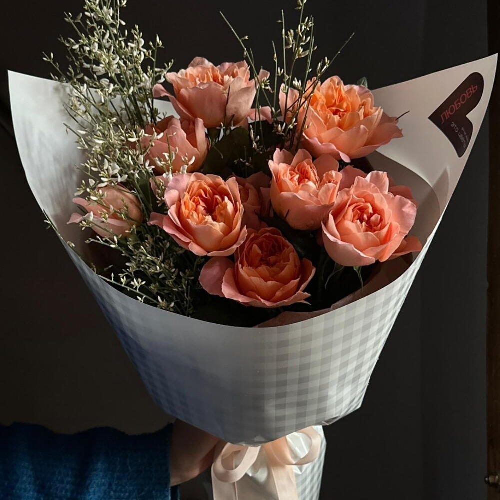 Садовая роза - 11 шт. гениста белая - 3 шт.