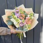 Ароматный букет из разноцветной маттиолы с эвкалиптом