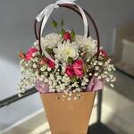 Гипсофила - 2 шт. Роза кустовая - 2 шт. Хризантема кустовая - 1 шт.