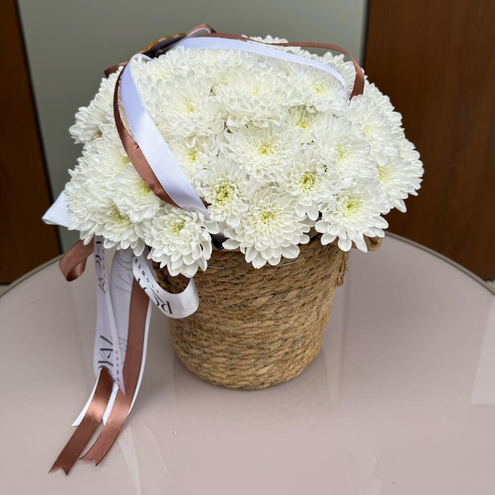 Хризантема кустовая - 6 шт. Кашпо - 1 шт. Оазис флористический - 1 шт.