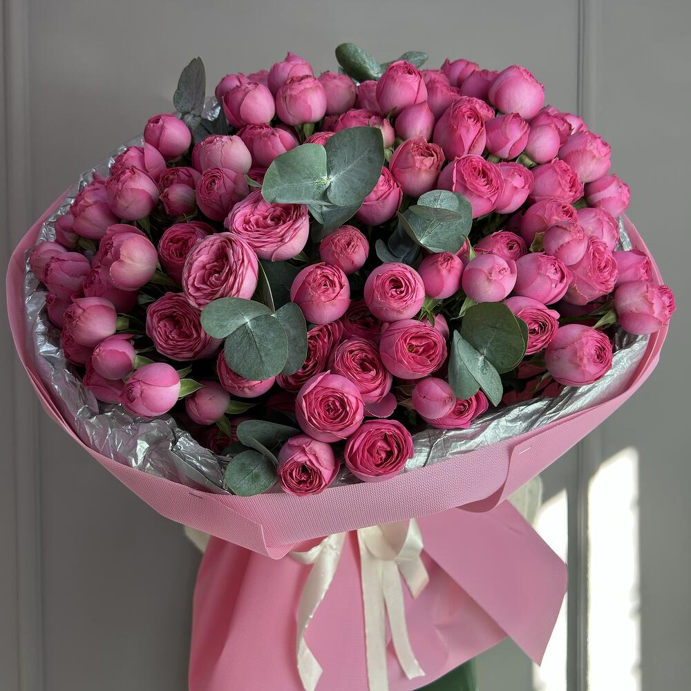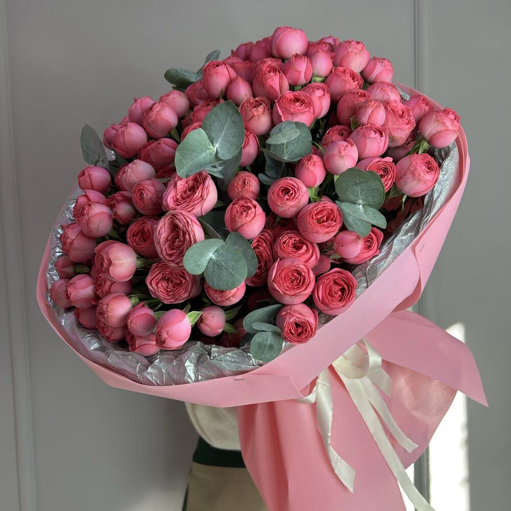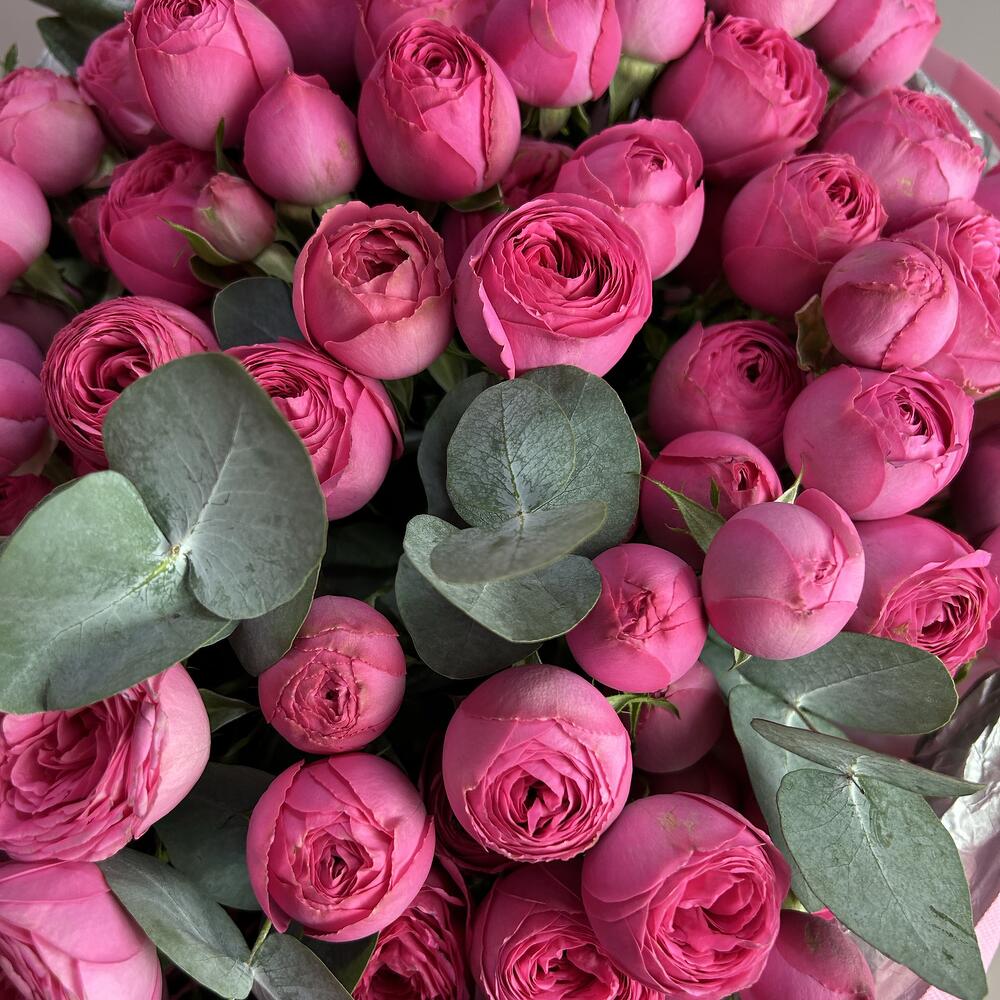 Эвкалипт - 5 шт. Кустовая роза - 17 шт.