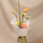 Тюльпан - 1 шт. Гвоздика - 1 шт. Орнитогалум - 1 шт. Форзиция - 1 шт. Роза кахала - 1 шт.