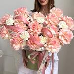 Этот изысканный набор цветов в коробке идеально подойдет в качестве подарка на любой случай. 13 ярких благоухающих роз удачно гармонируют с 5 гвоздиками, создавая букет, который способен оживить любое помещение. Выбирайте этот товар для того, чтобы подарить радость и удивить своих близких необычным и стильным подарком.