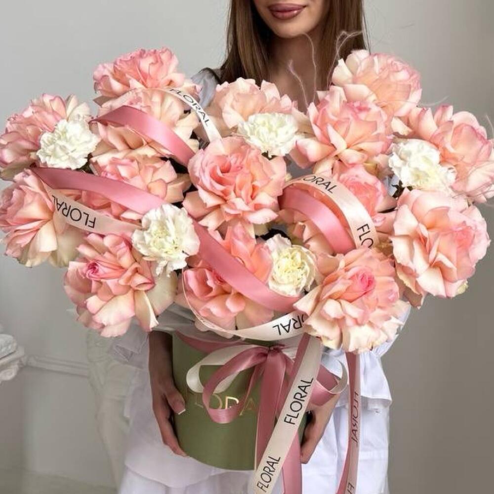 Этот изысканный набор цветов в коробке идеально подойдет в качестве подарка на любой случай. 13 ярких благоухающих роз удачно гармонируют с 5 гвоздиками, создавая букет, который способен оживить любое помещение. Выбирайте этот товар для того, чтобы подарить радость и удивить своих близких необычным и стильным подарком.