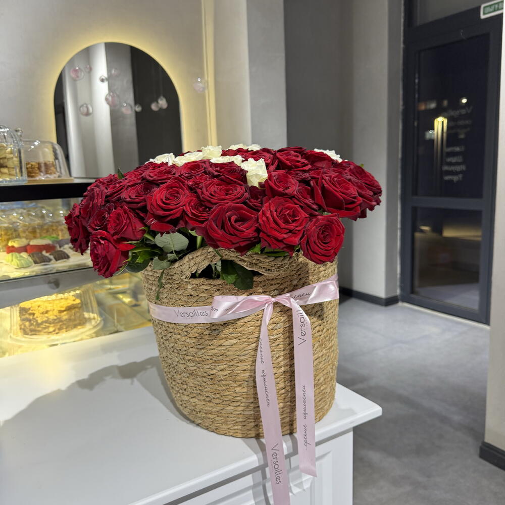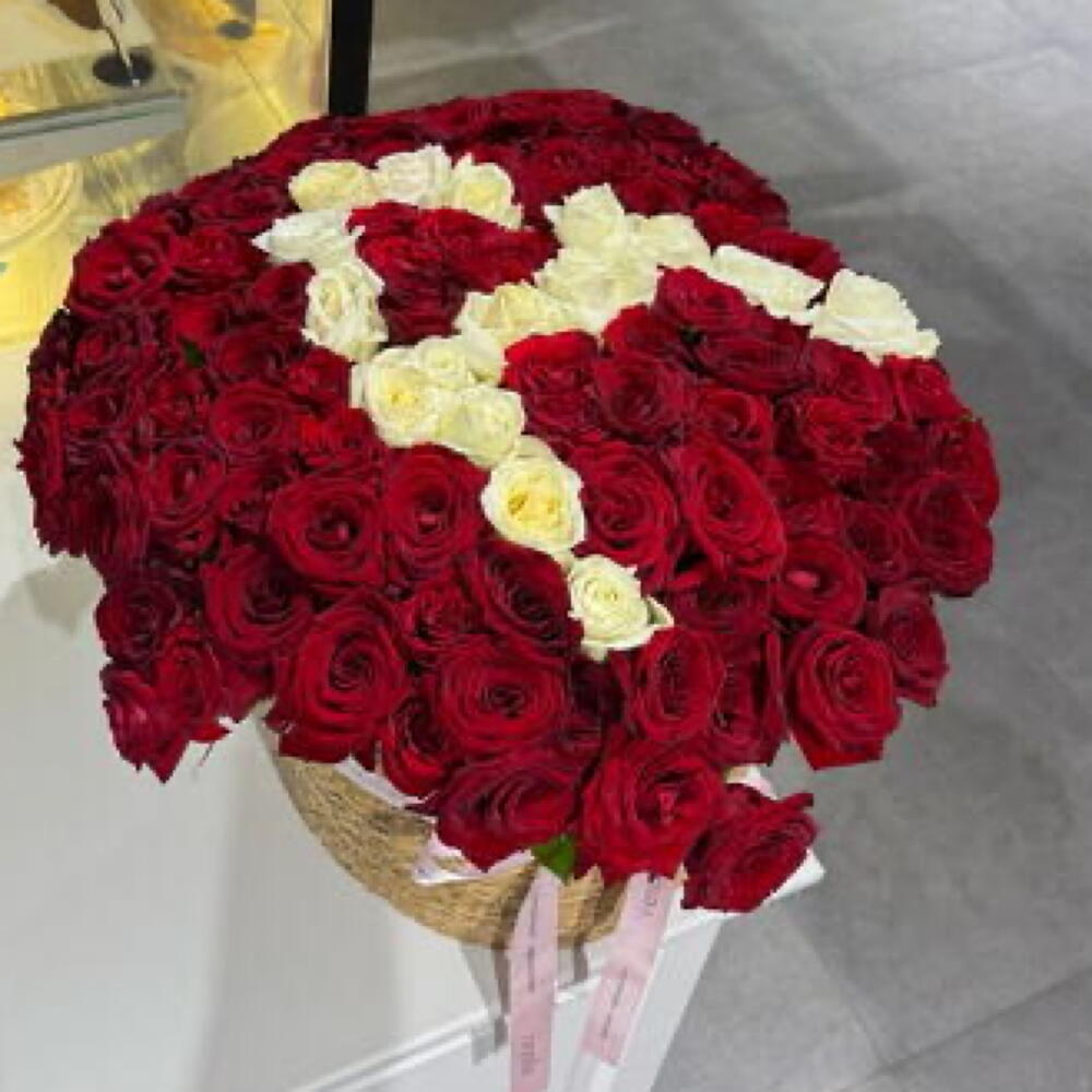 Авторская корзина с буквенным оформлением из роз размер L