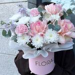 Этот таинственно обворожительный набор цветов в коробке подарит восхитительные моменты радости и счастья. Очаровательная композиция из экзотической маттиолы (2 шт.), богато расцветших роз (3 шт.), изящных премиум хризантем (2 шт.) и гармонично дополняющих общий образ зарубежных гвоздик (2 шт.), будет идеальным дополнением к любому событию!