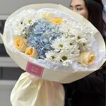 Гортензия - 1 шт. Хризантема кустовая - 3 шт. Роза - 5 шт.