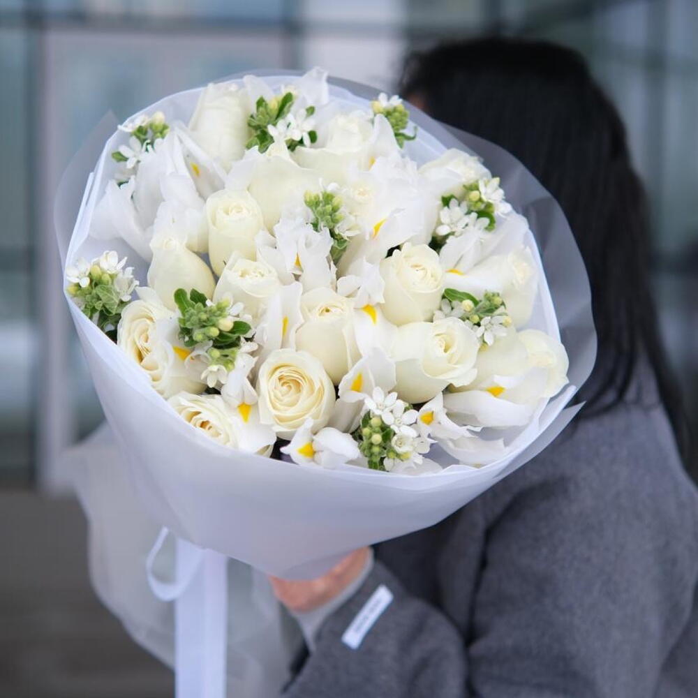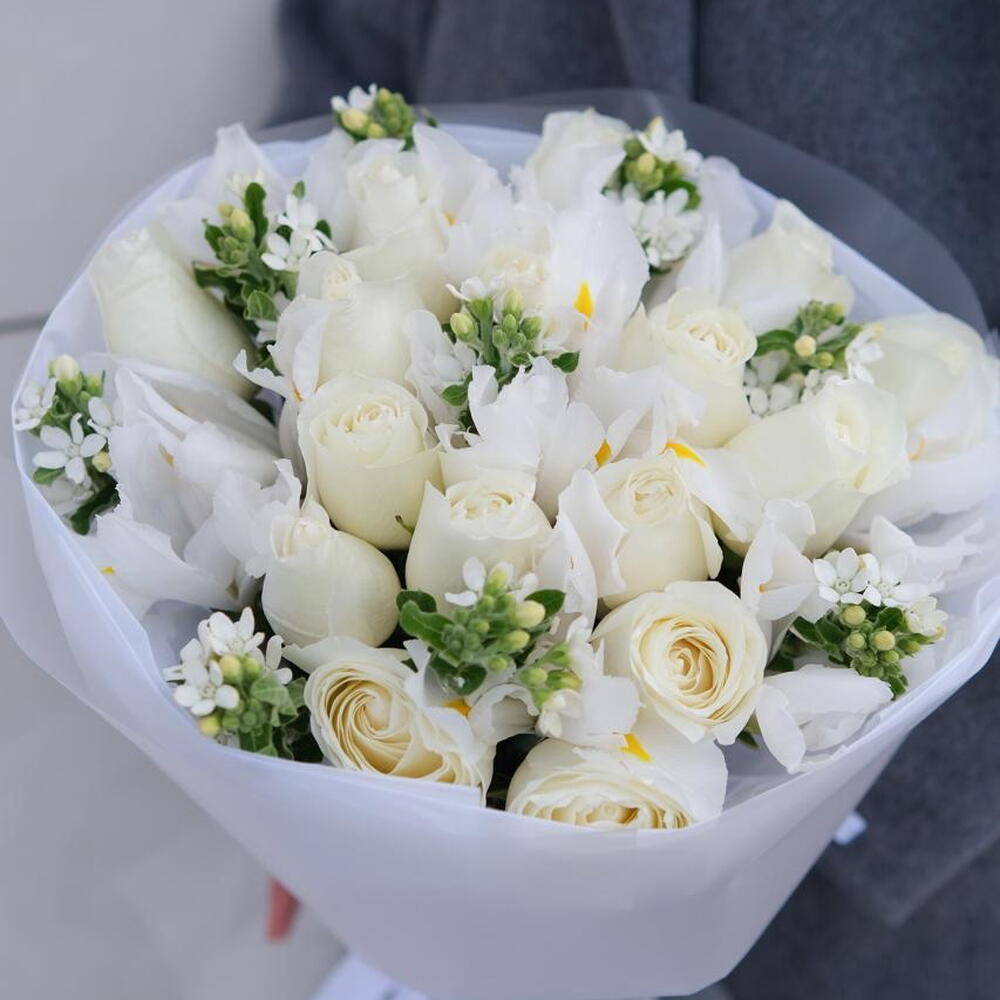 Ирис - 11 шт. Роза - 15 шт. Твидия - 9 шт.