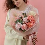 Авторский букет в нежных тонах из роз и диантусов в дизайнерской упаковке. Состав букета может быть немного изменен, исходя из наличия цветов в салоне. Но мы гарантируем сохранить цветовую гамму и стиль букета.