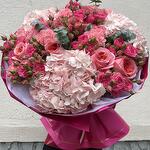 Авторский Букет Карамельное облако с гортензиями , пионовидными розами , спрей розами