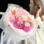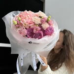 Гортензия - 1 шт. Роза - 7 шт. Эустома - 2 шт. Диантус - 5 шт.