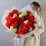 Роза Эквадор - 21 шт. Диантус - 19 шт. Упаковка дизайнерская - 1 шт.