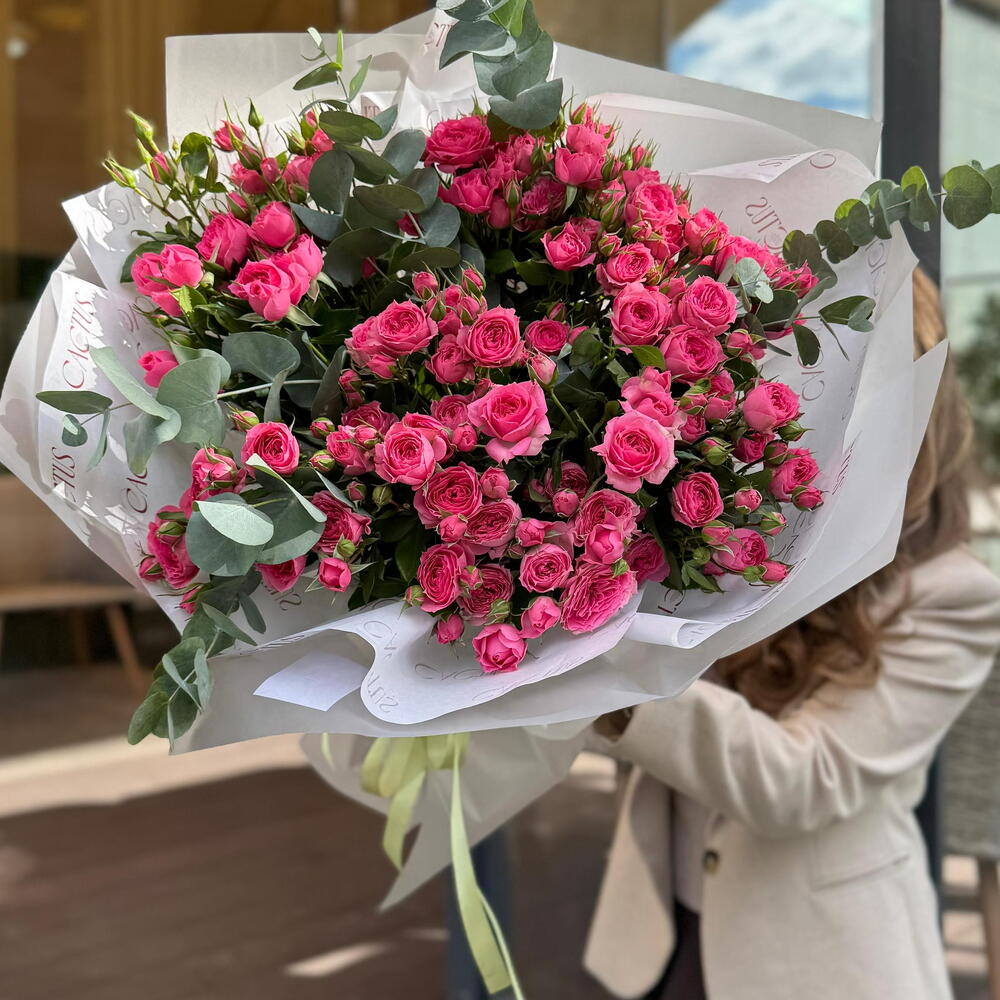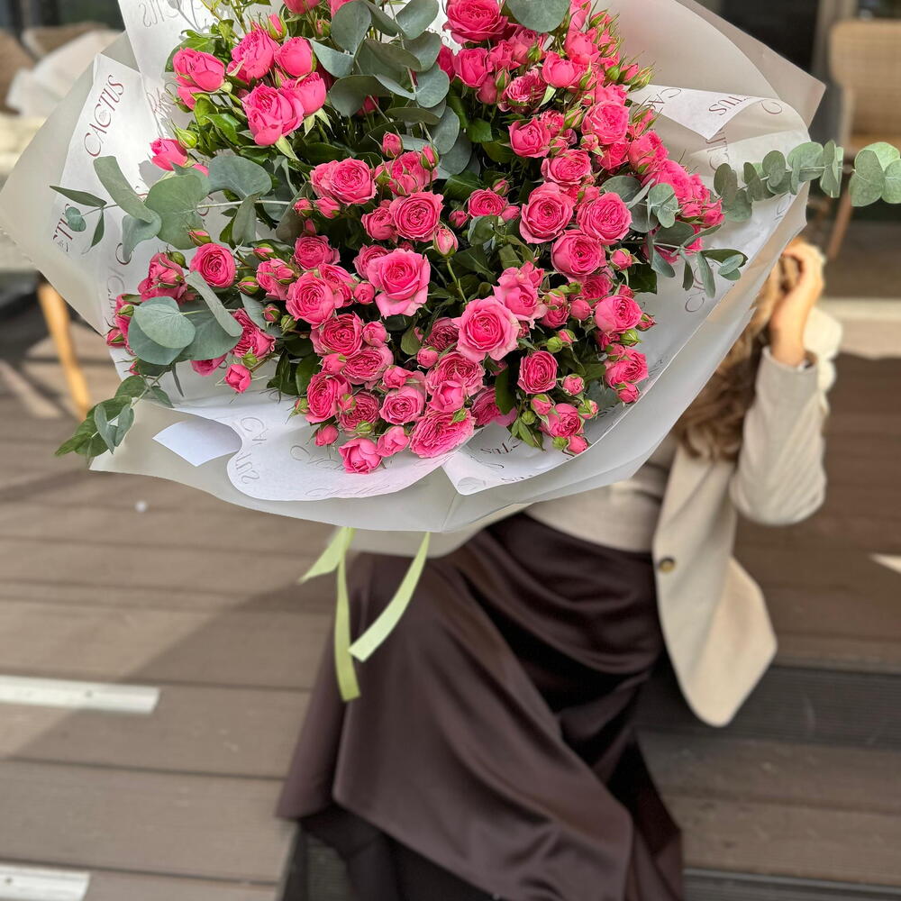 Эвкалипт - 3 шт. Кустовая роза - 15 шт.