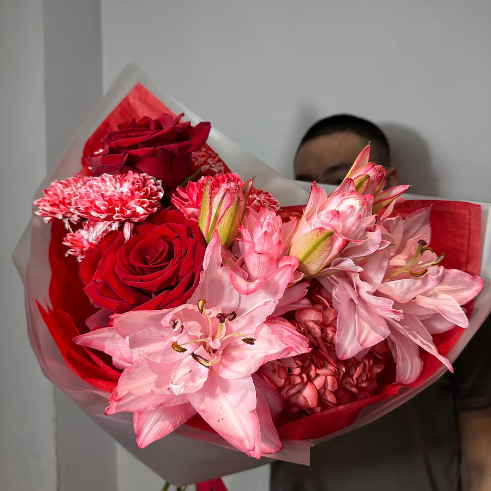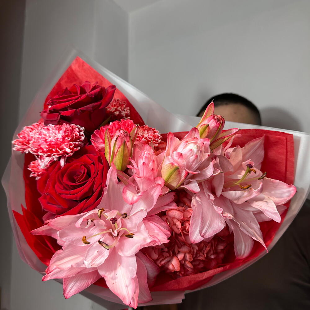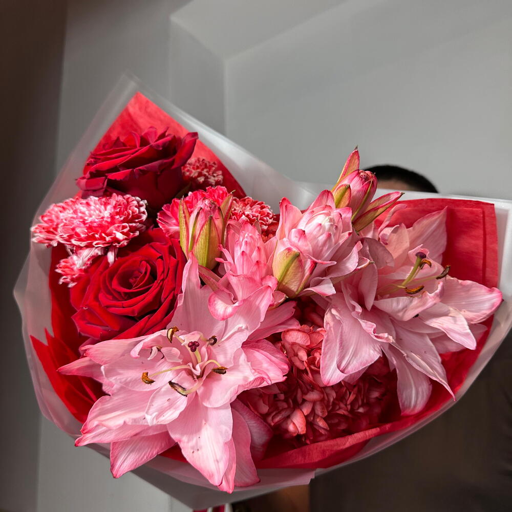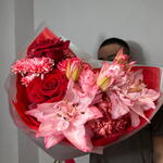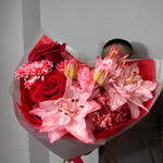 Авторский букет с лилией в красном оттенке