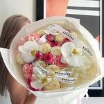 Гортензия - 2 шт. Роза - 15 шт. Кустовая роза - 5 шт. Гвоздика - 5 шт. орхидея - 3 шт.