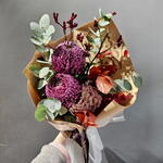Астильба - 1 шт. Эвкалипт - 2 шт. Анигозантус - 2 шт. Упаковка дизайнерская - 1 шт. хризантема бигуди - 2 шт. хризантема виена - 1 шт.