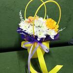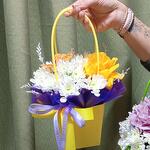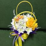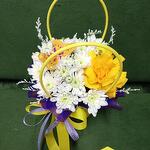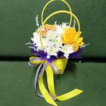 Хризантема кустовая - 2 шт. Роза - 1 шт. Сумочка - 1 шт. Бабочка декоративная - 1 шт. Оазис флористический - 1 шт.