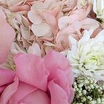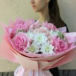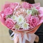 Озотамнус - 2 шт. Хризантема кустовая - 3 шт. Гортензия розовая - 1 шт. розы розовые - 5 шт.