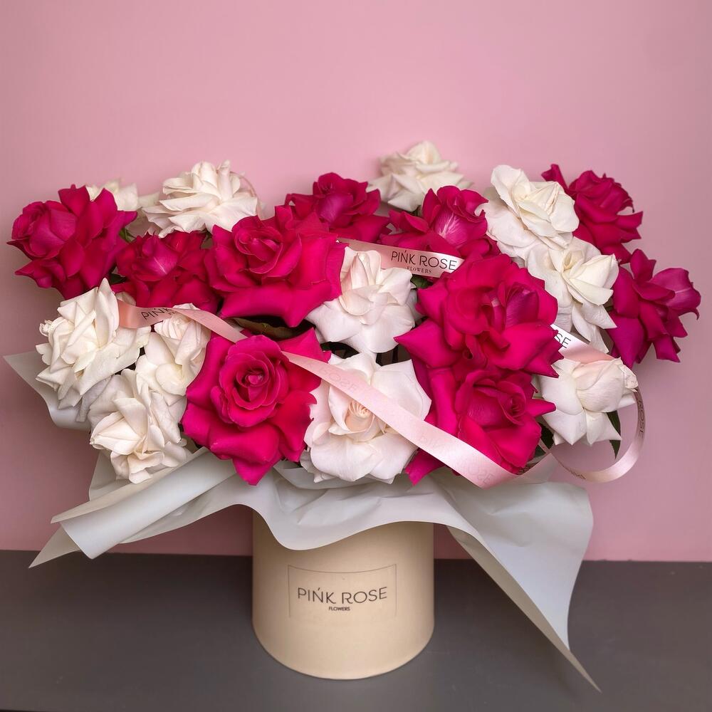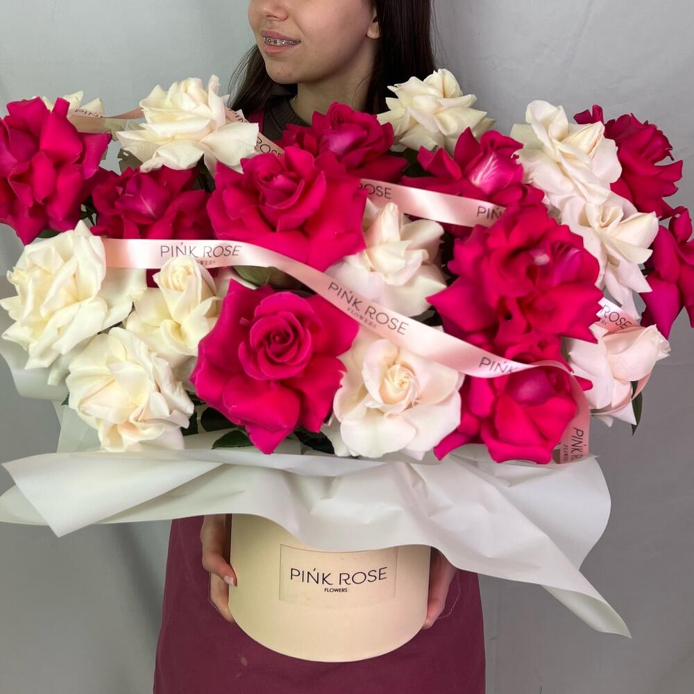 Невероятная большая композиция в коробке. Все цветы поставляются напрямую из Голландии, поэтому мы гарантируем их высокое качество и исключительную свежесть. При составлении букетов флористы используют цветы различных цветов и оттенков