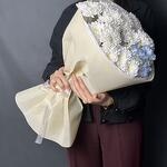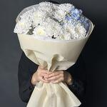 Гортензия - 1 шт. Хризантема кустовая - 3 шт. Лента атласная - 1 шт. Тишью - 3 шт. Упаковка дизайнерская - 2 шт.