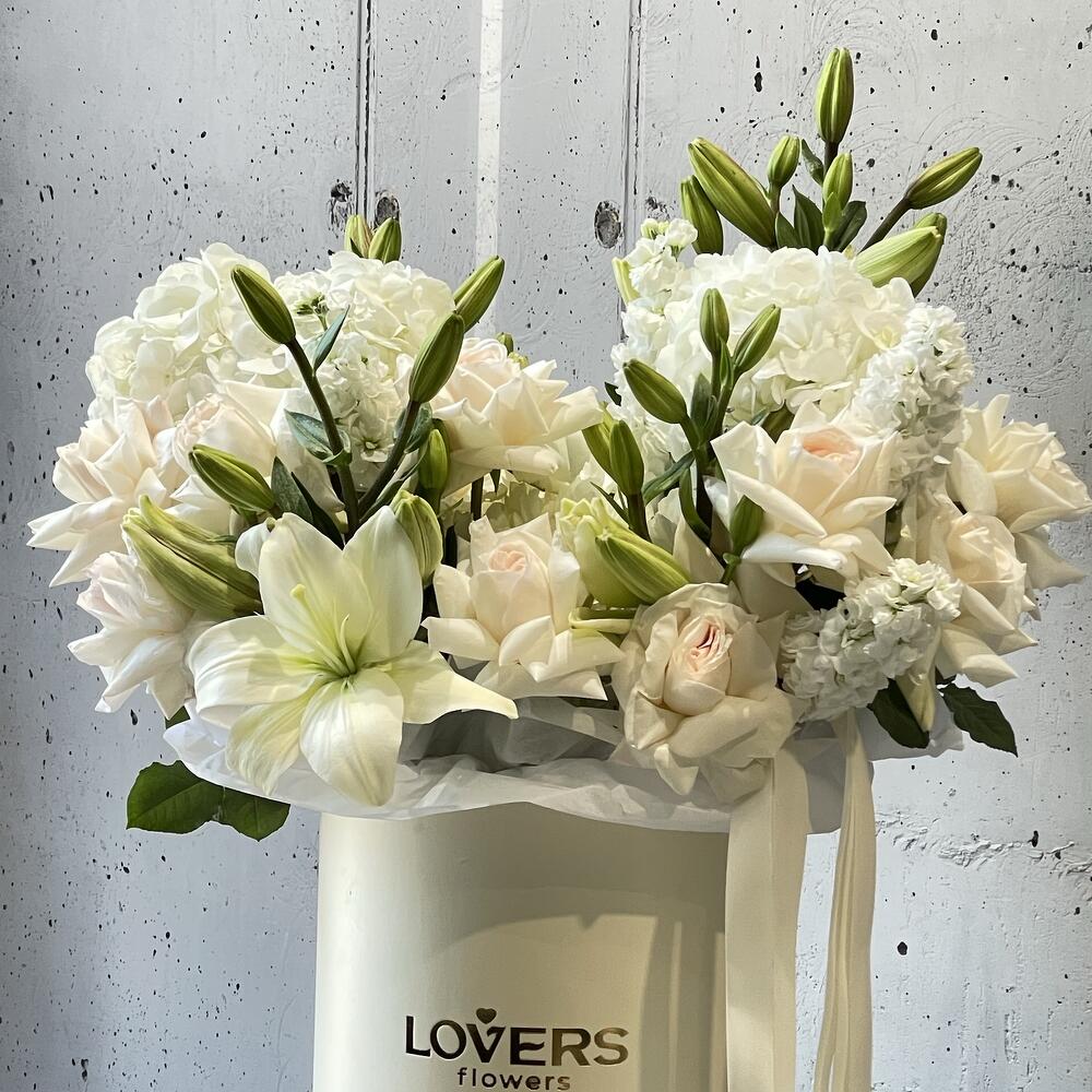 Гортензия - 2 шт. Лилия - 4 шт. Маттиола - 5 шт. Роза пионовидная - 13 шт.
