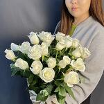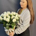 Этот роскошный ансамбль из 25 белоснежных роз, удачно сочетается с листьями эвкалипта, собранный в элегантное кашпо. Композиции обвязаны изысканной атласной лентой, подчеркивая благородство и непревзойденное качество букета. Этот подарок подойдет для самых романтических и запоминающихся моментов.