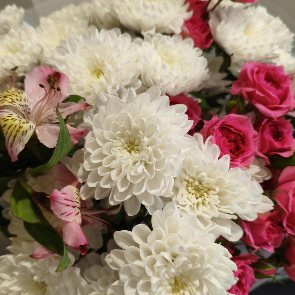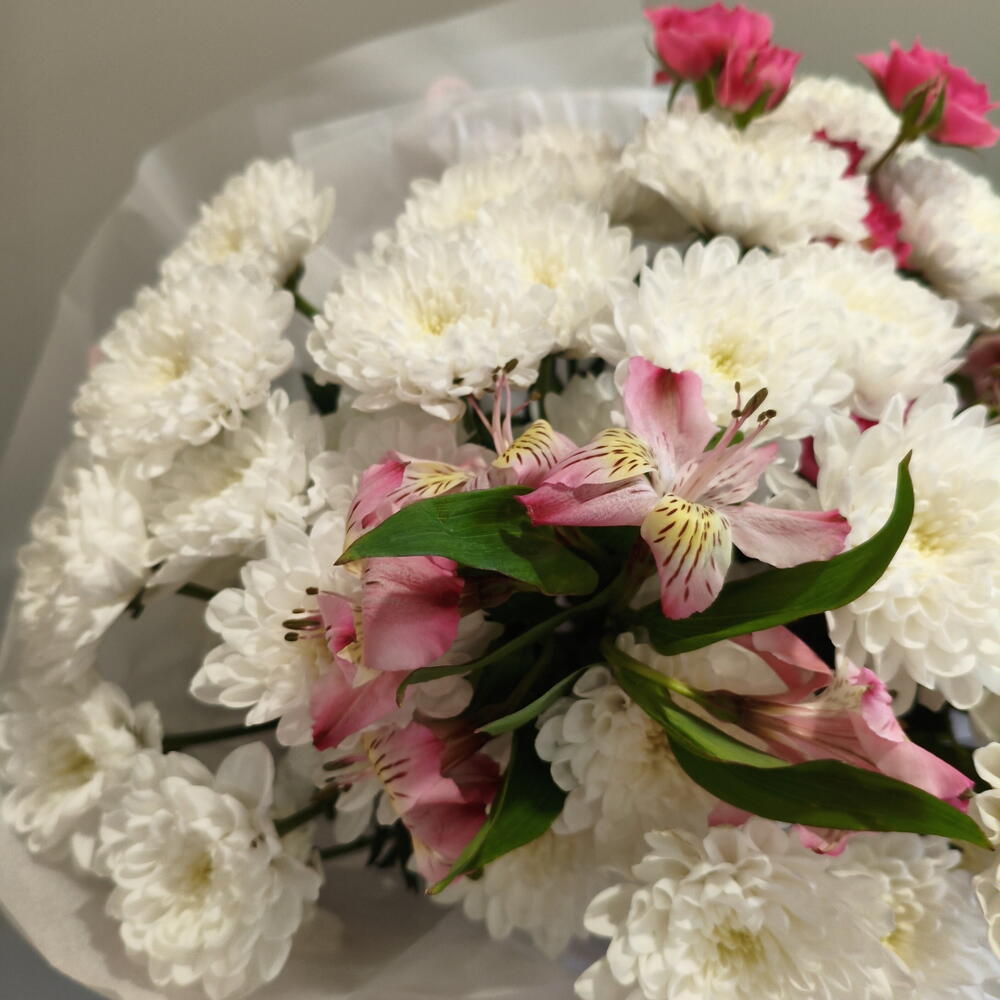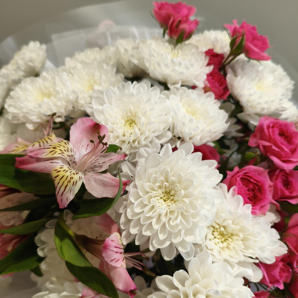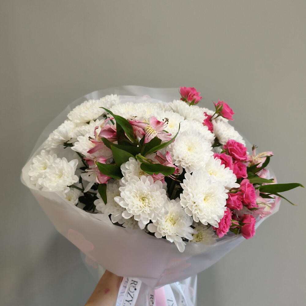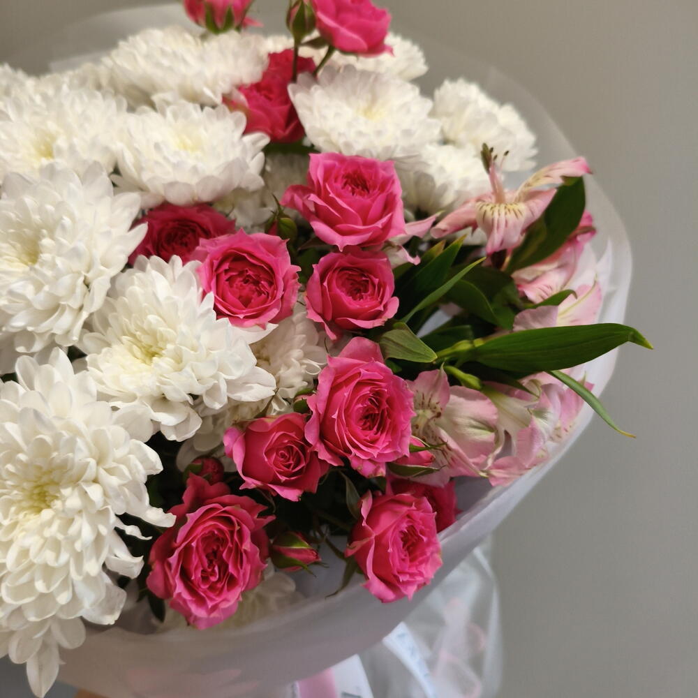 Альстромерия - 3 шт. Хризантема кустовая - 5 шт. кустовые розы - 3 шт.
