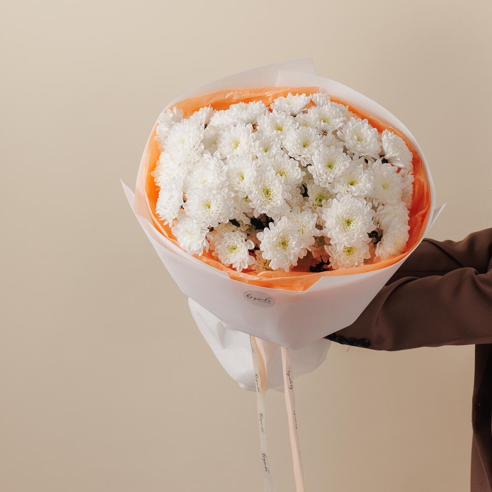 Моно букет из 9 веток белоснежной хризантемы