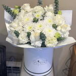Хризантема кустовая - 1 шт. Эвкалипт - 2 шт. Роза - 5 шт. эустома белая - 2 шт.