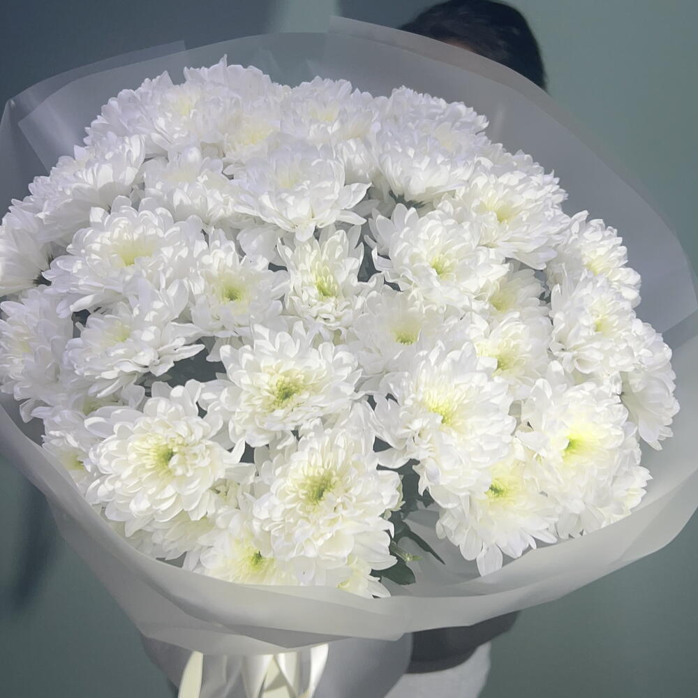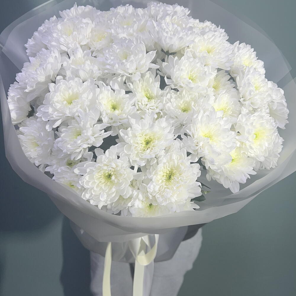 Белоснежная хризантема — монобукет из кустовых хризантем, нежный классический букет