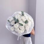 Букет из белых хризантем, которое символизирует чистоту, невинность и благородство.