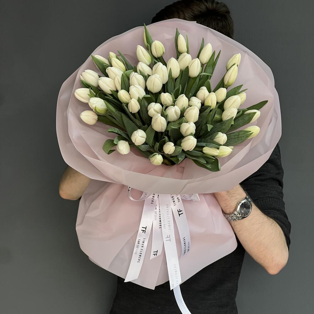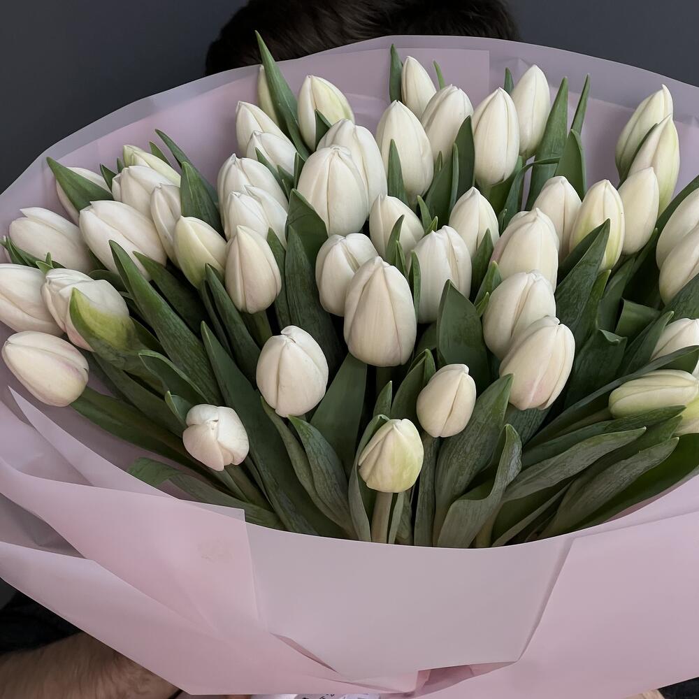 Тюльпан - 51 шт. Лента атласная - 3 шт. оформление матовая салфетка - 5 шт.
