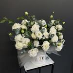 Белые Лизиантусы (Эустома) с эвкалиптом в тубусе