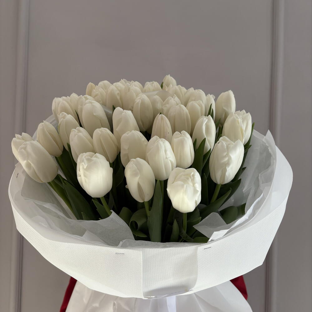 Белые тюльпаны символизирует чистоту и нежность. Порадуйте своих дам с глубокой любовью