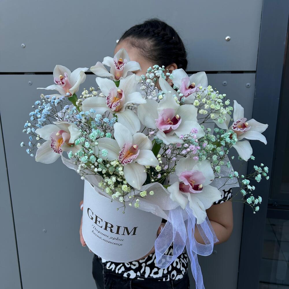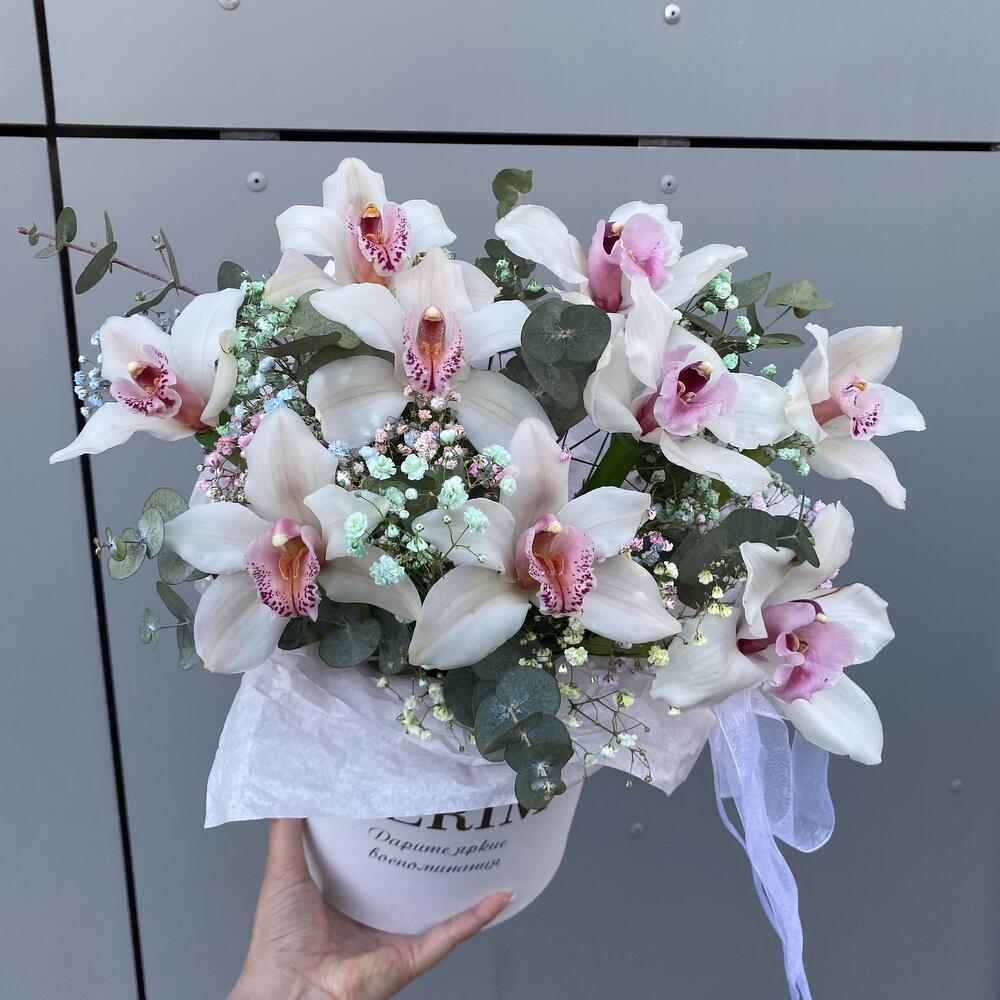 Гипсофила - 1 шт. Орхидея Цимбидиум - 9 шт. Зелень - 1 шт.